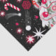 Dieses wunderschöne Design präsentiert Weihnachten mit einem verzierten und glänzend dekorierten Weihnachtsbaum, tiefem Nachthimmel, genialen Sternen und Weihnachtsleckereien. Die Farben sind schwarz, fett rot und perlweiß, mit einigen grünen Farbtupfern vom Baum.