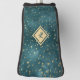 This mesmerizing design features a greenish teal starry night, dotted with star of gold and clouds of atmospheric vapor. Your initial appears in a gold colored diamond shape bordered in more gold. This pattern is elegant and fun.