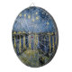 Strohdächer Hütten in Cordeville. Vincent Willem van Gogh. Nachtlandschaft in dunkelblauen und gelben Tönen. Es gibt eine Brücke über den Fluss. Im Vordergrund gehen ein Mann und eine Frau den Damm entlang. Die Sterne leuchten am Himmel. Reproduktion berühmter Kunstbilder im öffentlichen Bereich.