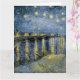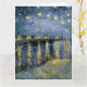 Strohdächer Hütten in Cordeville. Vincent Willem van Gogh. Nachtlandschaft in dunkelblauen und gelben Tönen. Es gibt eine Brücke über den Fluss. Im Vordergrund gehen ein Mann und eine Frau den Damm entlang. Die Sterne leuchten am Himmel. Reproduktion berühmter Kunstbilder im öffentlichen Bereich.