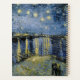 Strohdächer Hütten in Cordeville. Vincent Willem van Gogh. Nachtlandschaft in dunkelblauen und gelben Tönen. Es gibt eine Brücke über den Fluss. Im Vordergrund gehen ein Mann und eine Frau den Damm entlang. Die Sterne leuchten am Himmel. Reproduktion berühmter Kunstbilder im öffentlichen Bereich.
