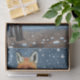 Ein lustiger, niedlicher Storybook-Charakter Fox auf einem sternenstarken Winterabend.