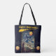 Halloween Tote Bag mit einer funkelnden Sternenhimmel, die auf ihrem Besenstiel durch die Nacht fliegt.