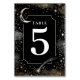Carte de numéro de table mystique mariage céleste noir et or