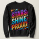 Das Design des "Stars Shine Proud"-T - Shirt zeigt einen kühnen und aufregenden Nachthimmel voller leuchtender Sterne, der Stolz und Einheit symbolisiert. Ein zentraler, strahlender Stern, der Individualität und Selbstbewusstsein repräsentiert, während kleinere Sterne ein harmonisches Muster bilden. Das Design nutzt reiche Blues und helle Gelbtöne und verleiht ein Gefühl von Wärme und Optimismus. Ideal für diejenigen, die gewollt haben, ihren Stolz auszudrücken und hell in ihrer Einzigartigkeit zu glänzen.