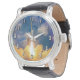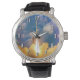 Uhr, Vintage Männeruhr mit schwarzem Lederarmband
