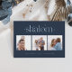 Senden Sie Hanukkah Grüße an Freunde und Familie in schicken Stil mit unseren eleganten Fotokarten. Die Karte ist so konzipiert, dass sie drei Ihrer liebsten quadratischen Fotos, die nebeneinander in einem Collage-Format angeordnet sind, aufnehmen kann. Sie enthält Ihren persönlichen Gruß (mit "fröhlicher Hanukkah" gezeigt) und die Familiennamen, die sich unten zentrieren. Der Gruß "Shalom" erscheint oben in der fesselnden Serifenschrift, die von winzigen Sternen hervorgehoben wird.