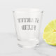 Für den Typ oder Gal, der Motor schätzt...und Schüsse. Das "Starter Fluid"-Schiebeglas weist Typografie in schwarzem Schablonenstift-Schriftart auf