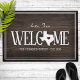 A great way to welcome friends and family with this personalized welcome mat. Your home state is featured in place of the letter O in the WELCOME greeting, with a red heart pinpointing your hometown. Be sure to click "customize" to move the heart to your area of the state. Makes a fantastic housewarming or newlywed gift.