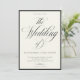 STATELY Calligraphy, modern wedding invitation. Template features, classic black typography and stripe pattern backing with soft ecru color backgrounds.