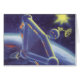 Illustration vintage d'image de science-fiction d'espace extérieur et de planètes futuristes. Une station spatiale en orbite autour d'une planète ou d'une lune avec un soleil brillant brillant dans le ciel dans le futur. Un design classique de bande dessinée rétro sci-fi des années 50.