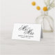 Gestastelte Typografie Mr. & Mrs. wedding Platzkarte für extravaganten Empfang. Schwarzweiß gefaltete Platzkarten. Schöner Schriftart Typ für formale Ehe Party.