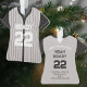 Célébrez votre petite étoile de baseball avec notre ornement personnalisé d'arbre de Noël, en forme de maillot de baseball classique ! Ce ornement unique en son genre est le gardien parfait pour tout enfant qui aime le baseball ou fait partie d'une équipe, capturant la joie du jeu d'une manière amusante et créative. Conçu dans un élégant jeu de couleurs noir et gris, l’ornement peut être customisé avec le nom et le numéro du joueur sur le devant, ce qui en fait un complément accrocheur à votre sapin de Noël. Sur le dos du maillot, vous trouverez des détails encore plus personnalisés, dont le nom de la ligue, le nom complet du joueur et des statistiques importantes comme l'âge, la position, l'entraîneur et l'information de saison. Cette conception réfléchie vous permet de commémorer les réalisations de votre enfant d’une manière qui sera chère pour les années à venir. Qu’il s’agisse d’un lanceur en herbe, d’un lanceur en marche rapide ou d’un chasseur déterminé, cet ornement devient un souvenir durable de leur travail acharné et de leur passion pour le jeu. L'ornement est non seulement parfait comme un gardien spécial pour votre enfant, mais aussi fait un fantastique cadeau d'équipe. Vous pouvez personnaliser chaque ornement pour chaque joueur de l’équipe, en créant un souvenir unique et réfléchi qui célèbre les réalisations de la saison. Coaches et coéquipiers adoreront ce maillot personnalisé, qui rassemble l'esprit d'équipe et l'enthousiasme des fêtes. Fabriqué avec des matériaux de haute qualité et un design robuste, ce maillot de baseball accrochera magnifiquement sur les arbres année après année, rappelant à votre enfant son temps sur le terrain et le plaisir de faire partie d'une équipe. C’est un cadeau super mignon et significatif pour tout jeune athlète et une façon parfaite de combiner son amour du baseball avec la magie de la saison des fêtes.