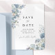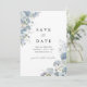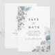 Diese elegante staubblaue Save-the-Date-Karte zeigt eine zarte Wasserfarben-Hortensien-Anordnung, die mit einer verfeinerten, minimalistischen Ästhetik für moderne und klassische Hochzeiten gleichermaßen gestaltet wurde.