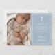 Diese elegante, moderne, minimalistische staubblaue Tauf-Dankeskarte kann mit Ihrem besonderen Babyfoto und einer Dankesnachricht in schicker Typografie personalisiert werden. Entworfen von Thisisnotme