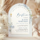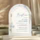 Feiern Sie den besonderen Tag Ihres Kleinen mit dieser staubblauen Delphinium-Blumen-Bogen-Jungen-Tauf-Einladung. Entworfen mit zarten, blauen Aquarell-Delphinium-Blumen, eleganten goldenen Akzenten und einem zeitlosen Bogen-Layout, verleiht dieses klassische Design Ihrer Taufe oder Ihrem Taufgottesdienst eine verfeinerte und bedeutungsvolle Note. Perfekt, um Familie und Freunde einzuladen, setzt diese editierbare Einladung den Ton für einen schönen und unvergesslichen Tag.