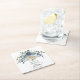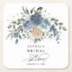 Eleganter staubblauer und champagnerfarbener Blumenpapieruntersetzer für eine Brautparty-Feier. Perfekte Mischung aus Aquarellrosen und Grün für ein zeitloses und romantisches Tischdetail.
