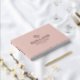 Elegantes und romantisches Hochzeitsgast-Gästebuch in staubrosa und rosa Gold mit verflochtenem Herzen über Ihrem gemeinsamen Nachnamen in klassischer Rosengold-Silber-Schrift, Ihren Namen unter und dann Hochzeitstag. Rosa und Rosengold Hochzeitsgast-Buch mit romantischen Herzen verwoben und Ihre Namen in einem geschmackvollen Design. Einfach romantisches Gästebuch für Ihre Hochzeit mit einem neutralen und romantischen Design mit zwei Herzen, Ihrem Nachnamen, Namen und Hochzeitsdatum in Rosengoldfolie vor einem sanften, hellrosa Hintergrund.