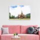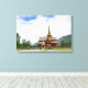 Impression en toile de l'église historique en bois stave de Lom, datant du XIIe siècle, une attraction touristique en Oppland, Norvège.