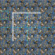 Zeitskulpturen mit Typografie lehren Friedenskunst, fließendes Wasser, Räder, Uhren, Musikinstrumente, Ketten mit Büchern, Drachen und Delphine auf blau Denim