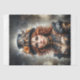 Dieses exquisite decouseitige Papiertaschentuch zeigt eine atemberaubende Rothaarfrau in opulenter Steampunkmode. Sie ist mit einem Viktorianisch-inspirierten, raffinierten Outfit geschmückt, das mit aufwändigen Mauerwerk, Spitzen-Details und einem stilvollen Top-Hut verziert ist und Mysterien und Charme ausstrahlt. Der sanft verblichene Hintergrund sorgt für eine nahtlose Mischung, was dieses Design perfekt macht, um jedem kreativen Projekt eine Touch von Vintag-trifft-industrieller Eleganz hinzuzufügen
