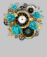 Steampunk Clock and Turquoise Roses on Striped