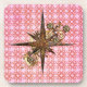 Rustikales Metalldesign mit einem Kompassstar im Steampunkstil auf Vintag rosa gemustertem Hintergrund