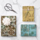Papierblätter mit Steampunk-Designs umhüllen. Drei verschiedene Farben und Muster bedecken diese großen Geschenkfolien. Die drei Designs sind robuste Gänge über einen beängstigenden Hintergrund, Penny-Farthing-Fahrräder mit großen Vorderrädern über einer Sepia-Farbe, blaues Papier mit alten Karten und verschiedenen Gängen. Die Zeitung eignet sich perfekt für einen Geburtstag, Abschluss oder eine besondere Veranstaltung, die mit einem altmodischen Thema gefeiert wird.