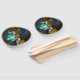 Steampunk glänzt mit blauen, transparenten Flügeln und grüner Glühbirne auf abgenutztem, braunem, strukturiertem Hintergrund. Steampunkstil.