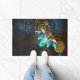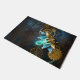 Steampunk glänzt mit blauen, transparenten Flügeln und grüner Glühbirne auf abgenutztem, braunem, strukturiertem Hintergrund. Steampunkstil.