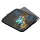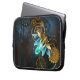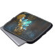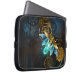 Steampunk glänzt mit blauen, transparenten Flügeln und grüner Glühbirne auf abgenutztem, braunem, strukturiertem Hintergrund. Steampunkstil.