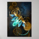 steampunkglühwürmchenblauleuchtenleuchtendgetriebemotteinsektvintagantike