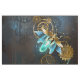 Steampunk glänzt mit blauen, transparenten Flügeln und grüner Glühbirne auf abgenutztem, braunem, strukturiertem Hintergrund. Steampunkstil.