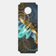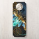 Steampunk glänzt mit blauen, transparenten Flügeln und grüner Glühbirne auf abgenutztem, braunem, strukturiertem Hintergrund. Steampunkstil.