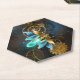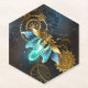 Steampunk glänzt mit blauen, transparenten Flügeln und grüner Glühbirne auf abgenutztem, braunem, strukturiertem Hintergrund. Steampunkstil.