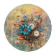 Dieses wunderschöne runde Glasschneidebrett ist mit AI-generierten Steampunk-Blume und Uhren in der Mitte auf gelbem Wildblume-Hintergrund ausgestattet. Küchenwäsche wird koordiniert.