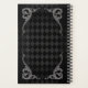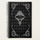 Steampunk-Design mit verzierten Viktorianischen Swirl-Elementen mit einem gemusterten Hintergrund aus schwarz und grau. Mit einem verzierten Vintagen Etikett, das Sie personalisieren können, mit dem Datum oder Ihrem Namen.
