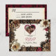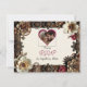 Hübsche Hochzeitskarte RSVP mit Steampunk Thema. Blume aus schmalem Metall in Gold, Kupfer und Bordeaux runden diese Hochzeitseinladung ab.
