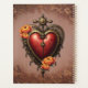 Steampunk Herz mit Blume. Ein Steamphansherz, vorwiegend rot mit sichtbaren Rissen, in einem verzierten goldenen Rahmen verziert. Der Rahmen besteht aus Uhrwerkelementen und ist mit orangefarbenen Blume geschmückt. Der Hintergrund ist ein sanftes, gedämpftes Rosa mit Blumenmustern in Gold und Braun. Die Stimmung ist insgesamt romantisch mit einer Touch Vintager und mechanischer Ästhetik.
