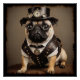 Über "Steampug" - Ein wunderschöner Mops, ganz in seinem Viktorianischen Gewand gekleidet, Posen glücklich für den intelligenten Künstler in diesem einzigartigen Tierportrait.