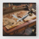 Steampunk Olde Worlde Map and Desk Quadratische Wanduhr