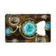 Turquoise lenses with antique watch with brass gears and golden keys on rusty, brown background. Steampunk style.