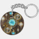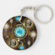 Turquoise lenses with antique watch with brass gears and golden keys on rusty, brown background. Steampunk style.