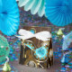 Steampunk Rusty Hintergrund mit türkisfarbenen Lin Geschenkschachtel
