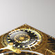 Türkisfarbene Linsen mit antiker Uhr mit Messinggetrieben und goldenen Tasten auf rostigem, braunem Hintergrund. Steampunkstil.