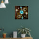 Steampunk Rusty Hintergrund mit türkisfarbenen Lin Poster
