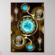 Steampunk Rusty Hintergrund mit türkisfarbenen Lin Poster