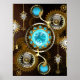 Steampunk Rusty Hintergrund mit türkisfarbenen Lin Poster