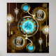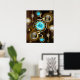Steampunk Rusty Hintergrund mit türkisfarbenen Lin Poster