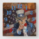 Steampunk Sam Patriotic US Flag Design Quadratische Wanduhr